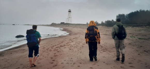 Etuporukka lähti marssimaan Rutjasta itään. Aloitin kuskien kanssa kävelyn puolitoista tuntia myöhemmin vietyämme ensin yhden auton Kundaan ja toisen auton vaikeasti löytämämme Letipean majakan luo.