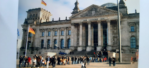 Kävelimme aamulla Potsdamer Platzin kautta holokaustin muistomerkille. Edellisellä kerralla sitä rakennettiin, nyt se oli valmis. Kävelimme kivipaasien välissä matalalla ja syvällä. Saavuimme Brandenburgin Portin kautta Valtiopäivätalolle. Aloimme jonottaa sisään, jono oli pelottavan pitkä.